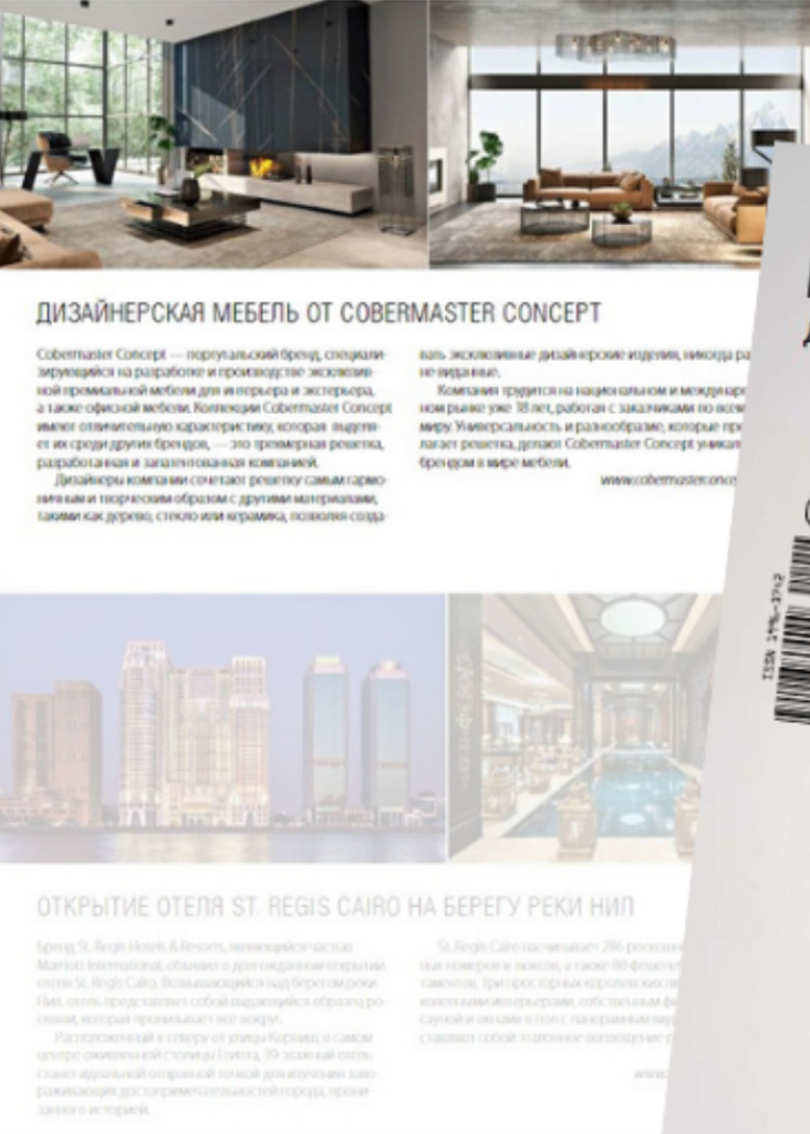 Tables basses Moon et Elements ; lampes Twins, Glare, Skew et Disform ; table de bureau Excentric ; console Horizon et vase Diamond présentés dans le magazine Interierny, 2021