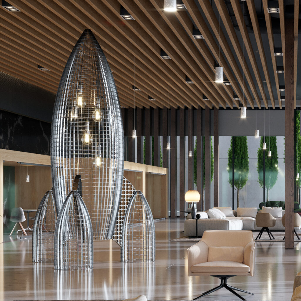 Une sculpture géométriquement parfaite réalisée en caillebotis tridimensionnel COBERMASTER, inspirée de la fusée mythique du célèbre dessin animé français « Les Aventures de TinTin » que nous connaissons tous depuis notre enfance.