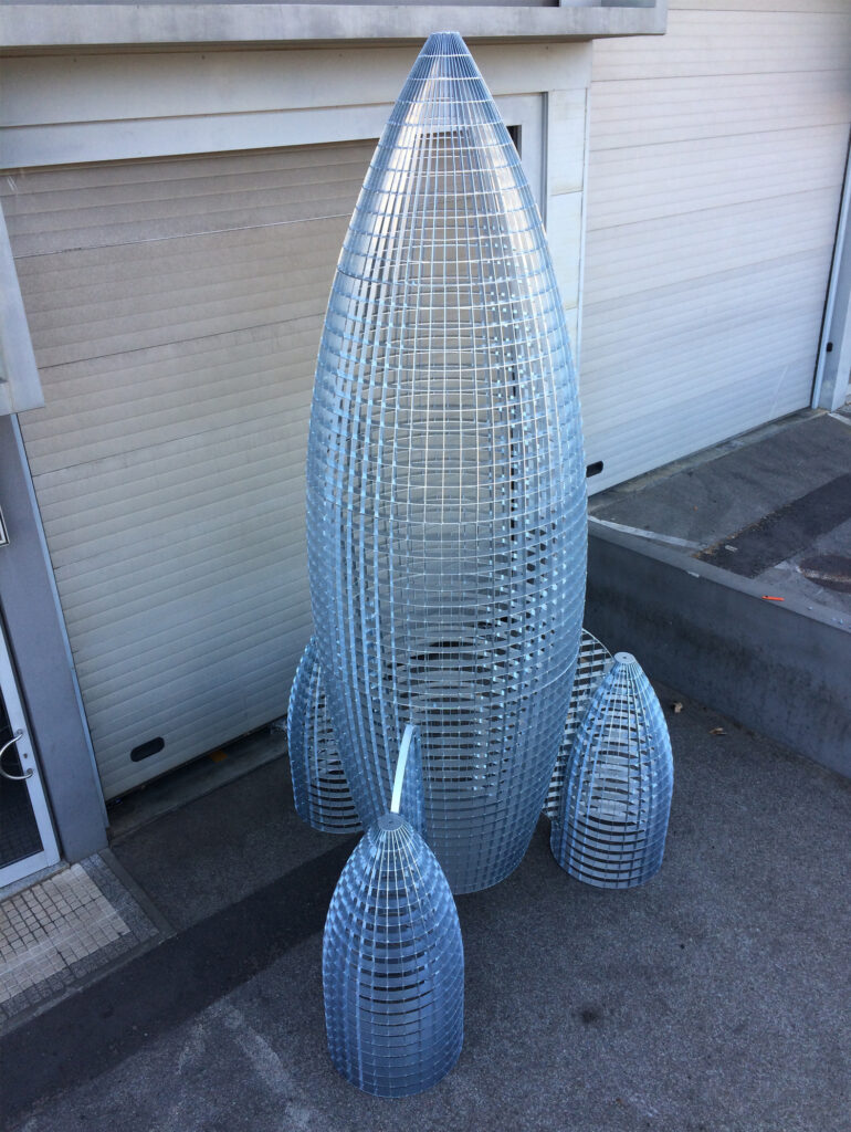 La Fusée en caillebotis est une sculpture fantastique d’un très haut niveau technique de fabrication.