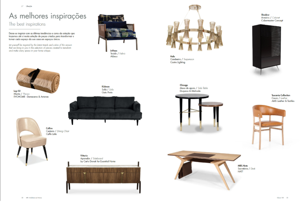 Armário Shadow, Aparador Shadow e Candeeiro de Pé Studio destacados na Revista Mobiliário em Notícia Magazine, 2022