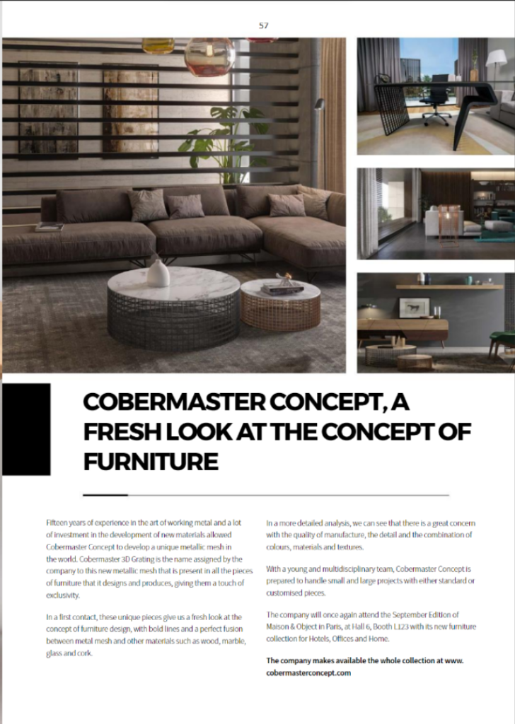 Mesa de Centro Moon, Mesa de Escritório Purity, Candeeiro de Pé Glare e Consola Latitude destacados na Revista The Art of Design, 2018